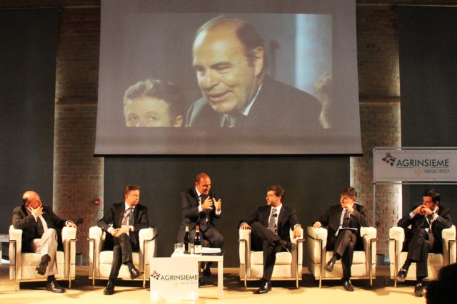 Sul palco, a condurre il dibattito, il giornalista e scrittore Bruno Vespa. Seduti sulle famose poltroncine bianche, in perfetto stile “Porta a Porta” il programma che da anni Vespa conduce su RaiUno, c’erano il viceministro all’Agricoltura, Andrea Olivero; l’assessore alle Politiche agricole della Regione Piemonte, Claudio Sacchetto; Mario Guidi, presidente nazionale di Confagricoltura e coordinatore di Agrinsieme, ispiratrice di Agrinsieme Moscato ed espressione nazionale del patto tra Confagricoltura, Cia e Cooperative; Giorgio Mercuri, di Federagri-Confcooperative e Dino Scanavino, presidente nazionale della Cia.